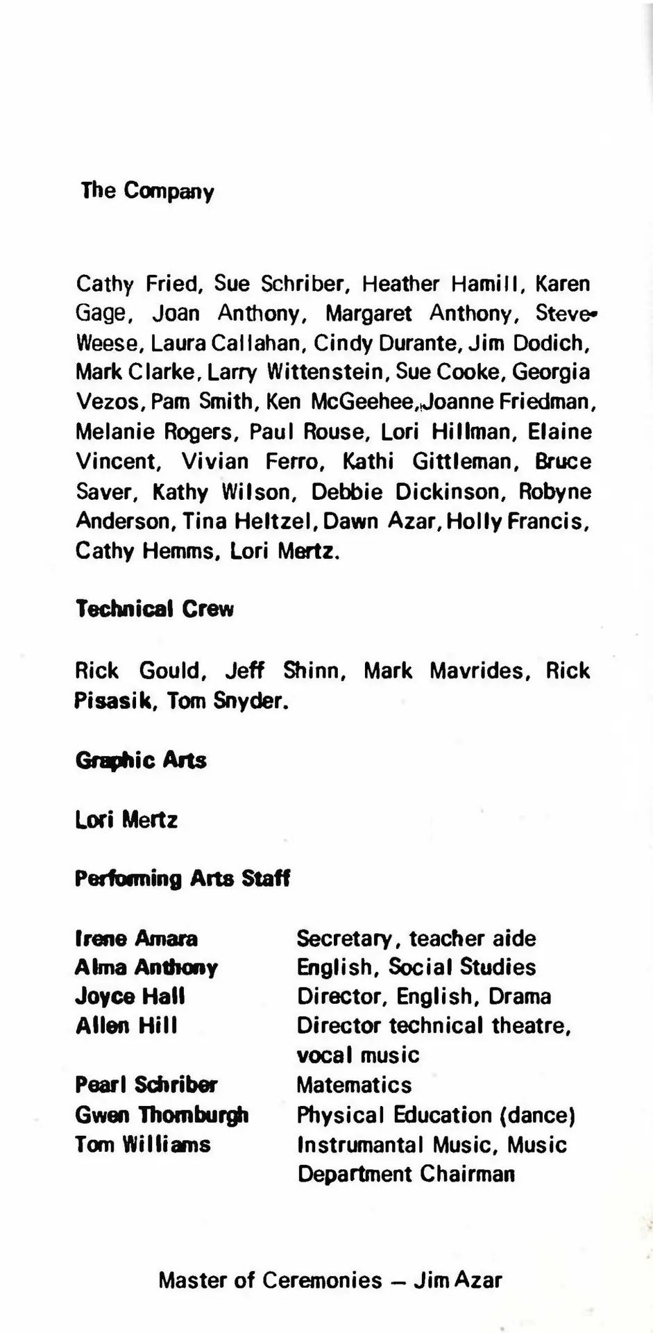 We toured many other schools and retirement facilities with variations of this show. It was definitely entertaining, and for other schools, it gave students an opportunity to discover the Performing Arts Program that was available to any high school student in the county. (So far, we have not found any pictures from these performances.)